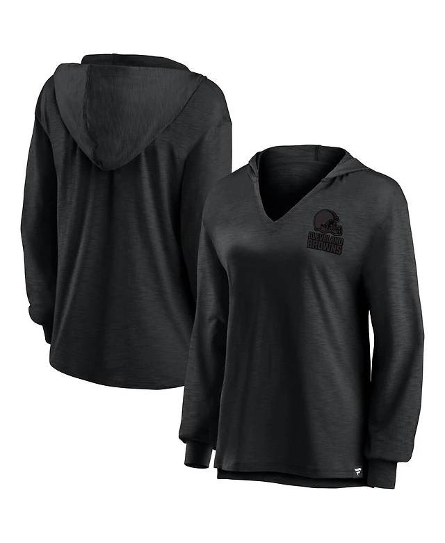 Fanatics Women's Cleveland Browns Blackout Slub Hoodie V-Neck Long Sleeve T-Shirt