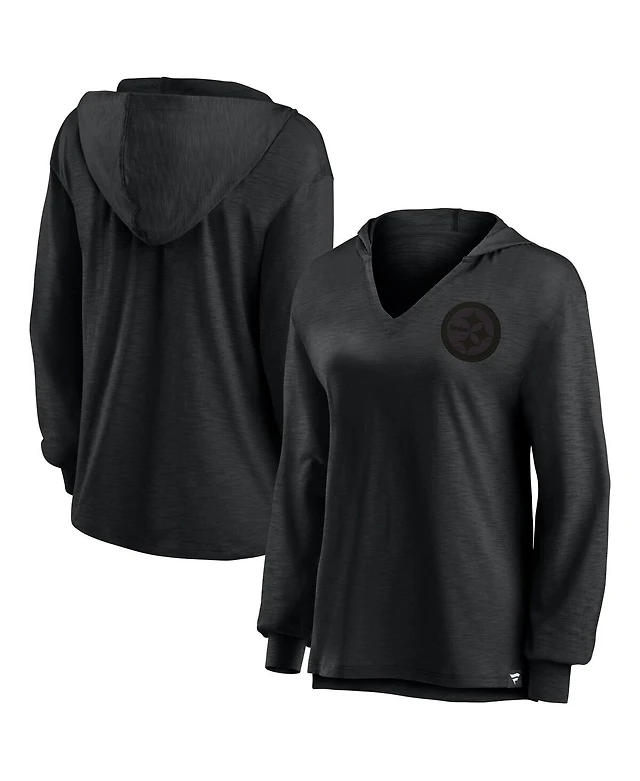 Fanatics Women's Pittsburgh Steelers Blackout Slub Hoodie V-Neck Long Sleeve T-Shirt