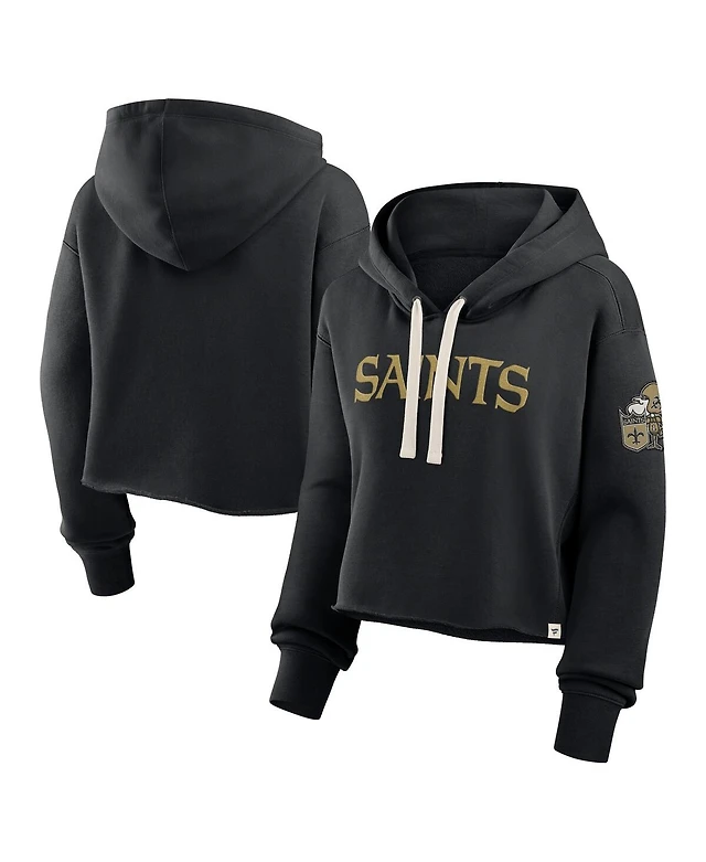 Fanatics Women's Black New Orleans Saints Oversized Hometown Heritage Cropped Hoodie