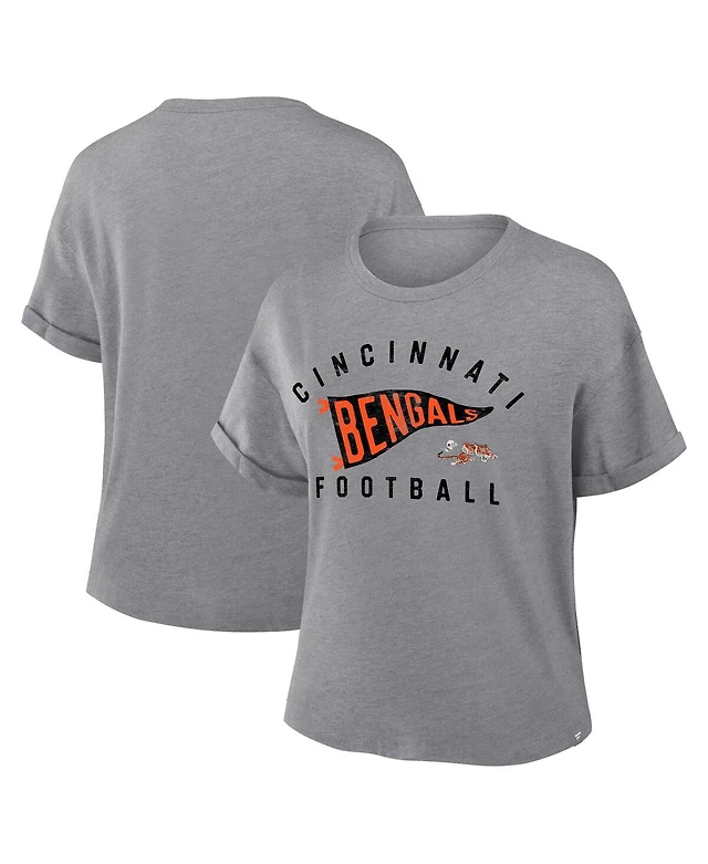 Fanatics Women's Heather Gray Cincinnati Bengals Pennant Wave Tribute Tri-Blend Boxy T-Shirt