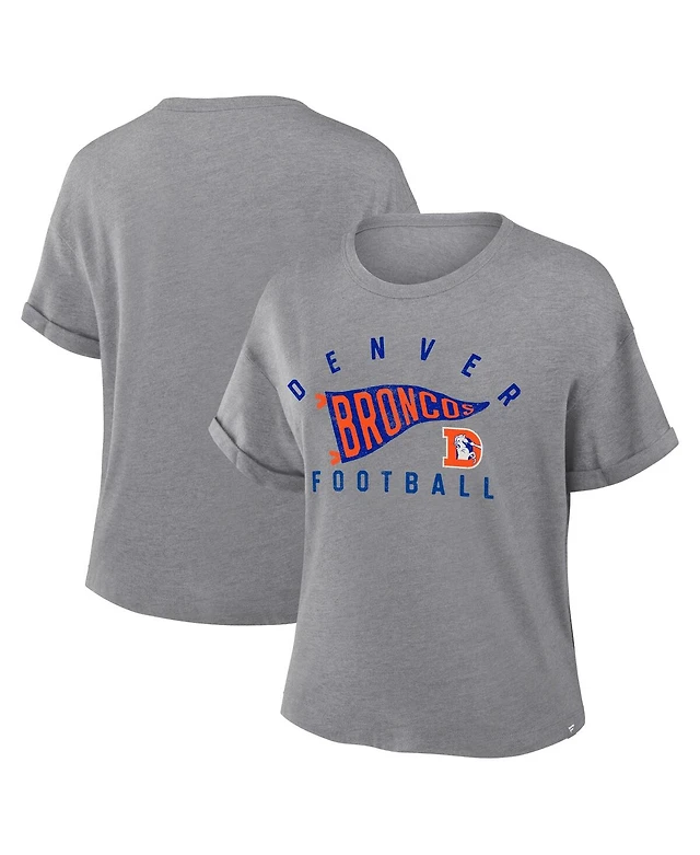 Fanatics Women's Heather Gray Denver Broncos Pennant Wave Tribute Tri-Blend Boxy T-Shirt