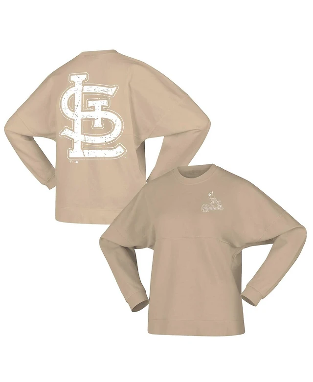 Women's Fanatics Tan Distressed St. Louis Cardinals Branded Fleece Pullover Sweatshirt