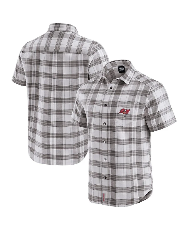 Darius Rucker Collection by Fanatics Men's Gray Tampa Bay Buccaneers Team Plaid Short Sleeve Full-Snap Shirt