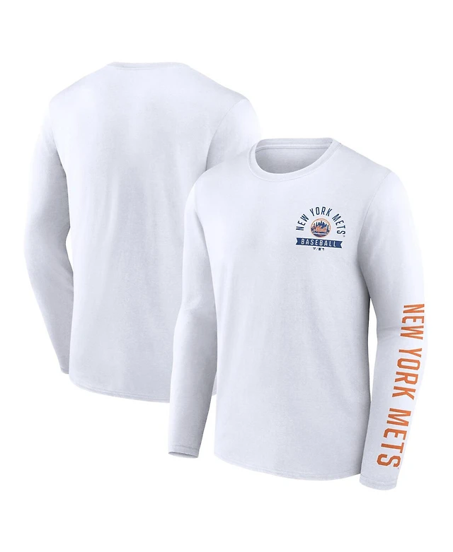 Men's Fanatics White New York Mets Pressbox Long Sleeve T-shirt