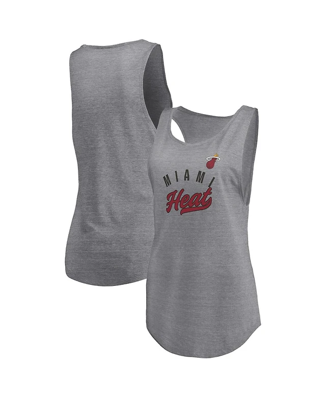 Fanatics Women's Heathered Gray Miami Heat Quality Time Open Scoop Neck Tri-Blend Tank Top