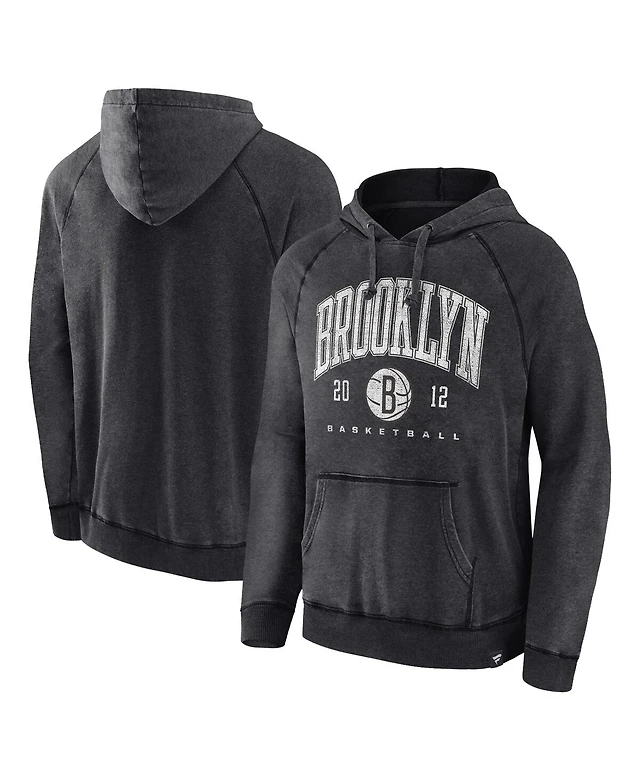 Men's Fanatics Heather Charcoal Distressed Brooklyn Nets Foul Trouble Snow Wash Raglan Pullover Hoodie