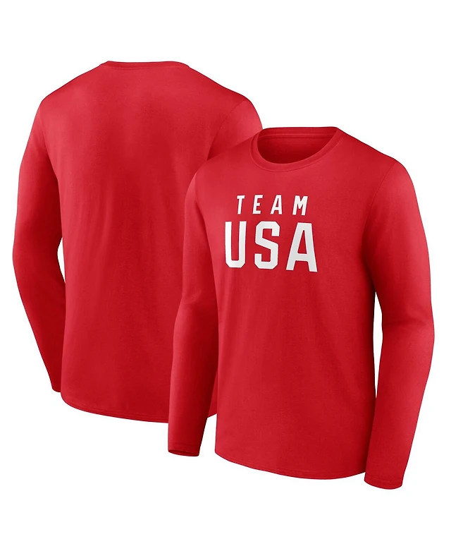Fanatics Men's Red Team Usa Wordmark Long Sleeve T-Shirt