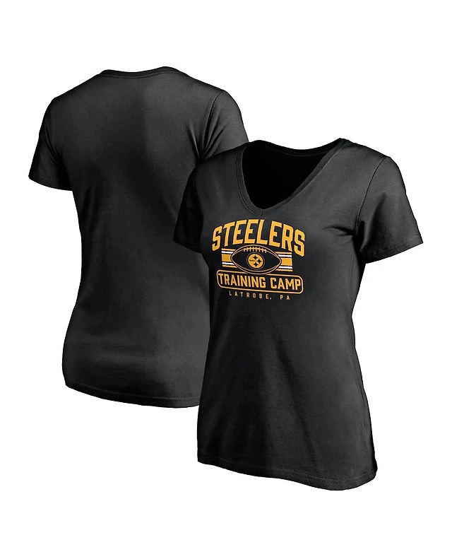 Fanatics Women's Black Pittsburgh Steelers Training Camp Stripe V-Neck T-Shirt
