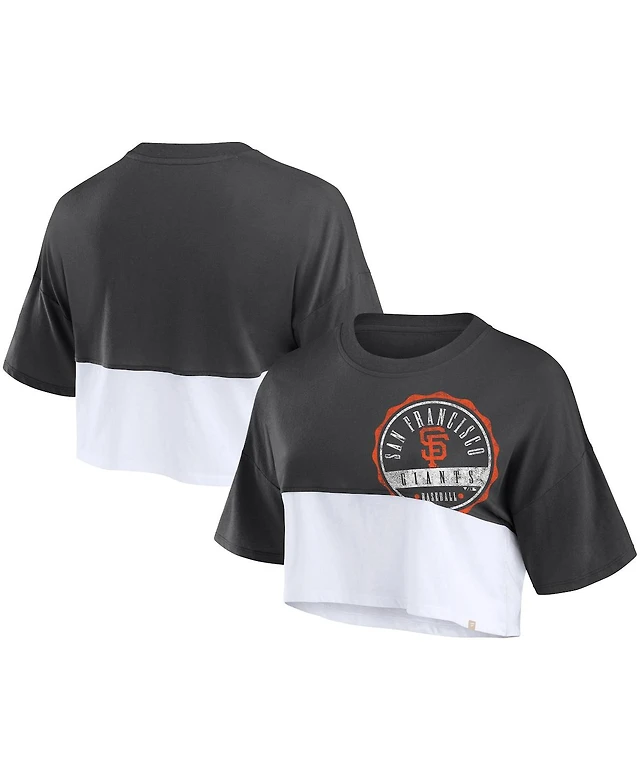 Fanatics Women's Heather Black/White San Francisco Giants Color Split Boxy Cropped T-Shirt