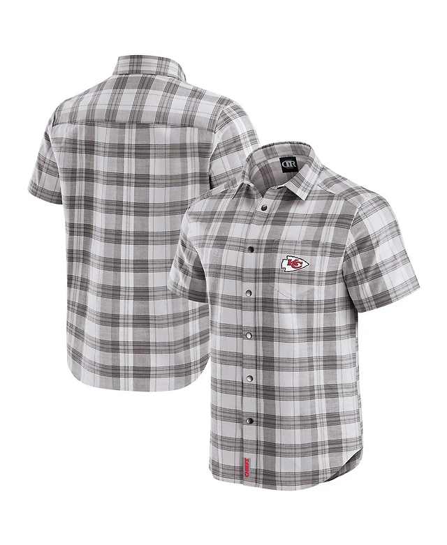 Darius Rucker Collection by Fanatics Men's Gray Kansas City Chiefs Team Plaid Short Sleeve Full-Snap Shirt