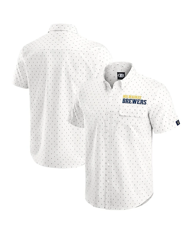 Darius Rucker Collection by Fanatics Men's Cream Milwaukee Brewers Printed Button-Down Shirt
