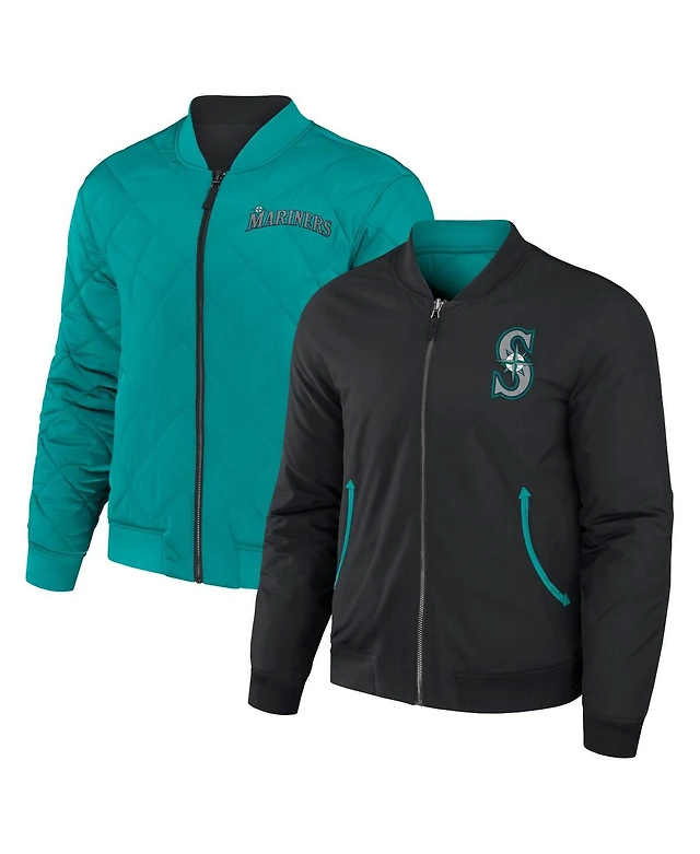 Men's Darius Rucker Collection by Fanatics Black, Aqua Seattle Mariners Reversible Full-Zip Bomber Jacket