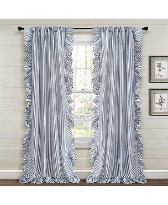 Kate Aurora Country Farmhouse Cotton Striped Tie Up Window Curtain