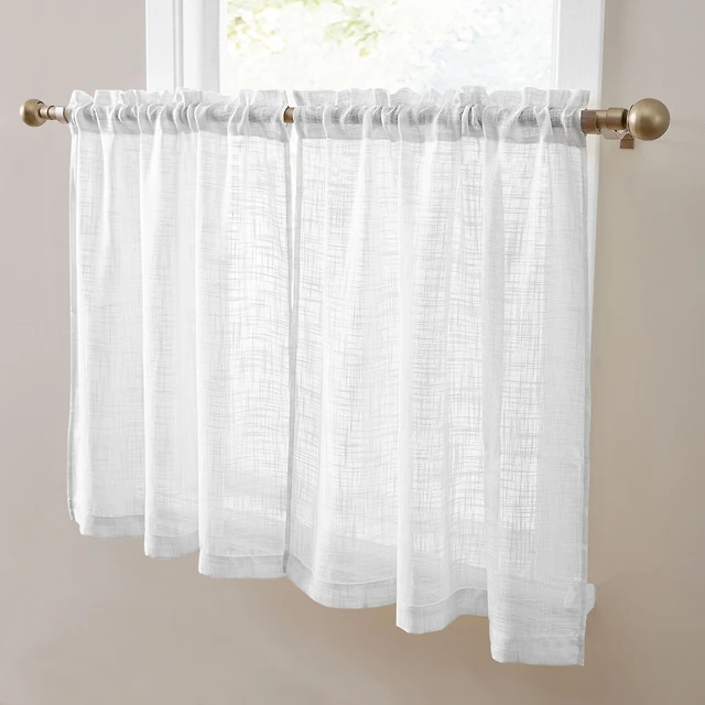 Hlc.me Linda Faux Linen Textured Semi Sheer Privacy Light Filtering Transparent Thick Half Short Rod Pocket Curtain Valance Topper Small Windows, Livi