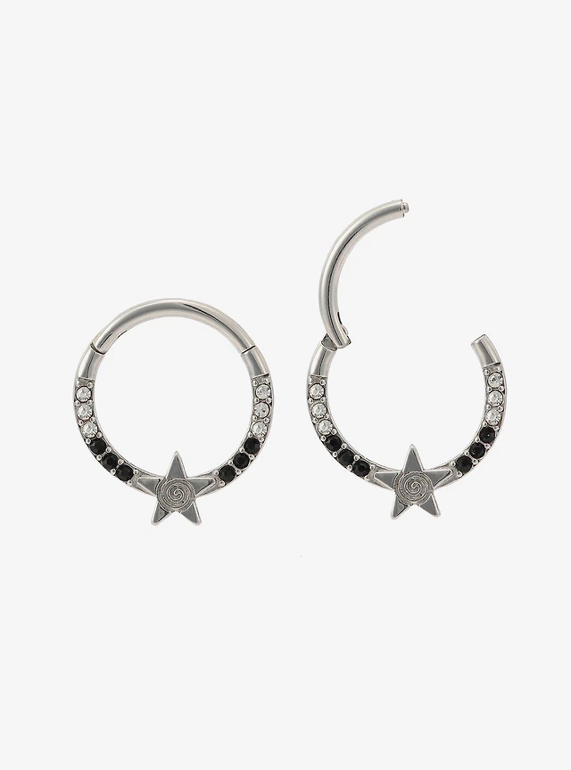 Steel Raven Heart Skull Nose Stud & Hoop 9 Pack