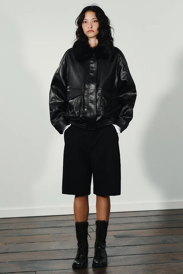 Belldini Women's Black Label Faux Fur Collar Short Zip Cardigan Sweater