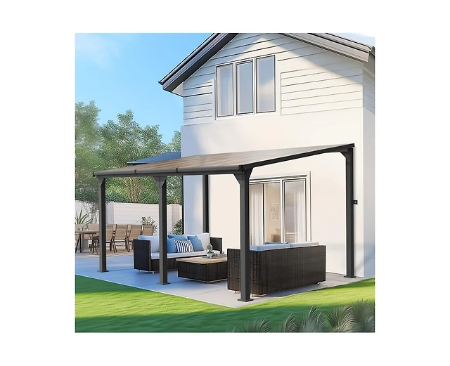 10 x 10 ft Flat Top Pergola with Retractable Canopy for Garden Pool Porch and Backyard