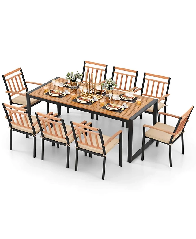 Gymax 9 Pieces Patio Dining Set w/ Soft Cushions and 1.9'' Umbrella Hole for Garden
