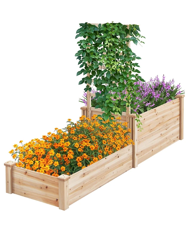 Best Choice Products 72x23x30in Raised Garden Bed, Elevated Wood Planter Box for Patio w/ Divider Panel