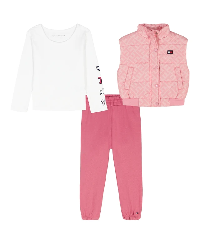 Tommy Hilfiger Girls 4-6X 3-Piece Vest, T-Shirt, and Joggers Set