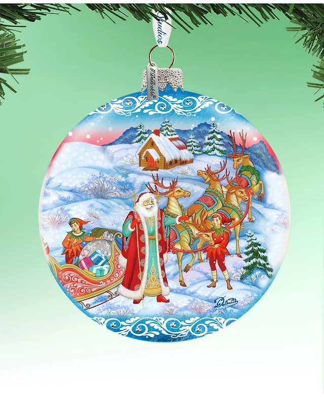 G.DeBrekht Ride to North Pole Santa Glass Ornament