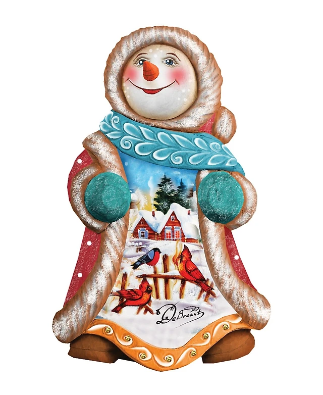 G.DeBrekht Hand Painted Snowy Day Snowman Ornament Figurine with Scenic Painting
