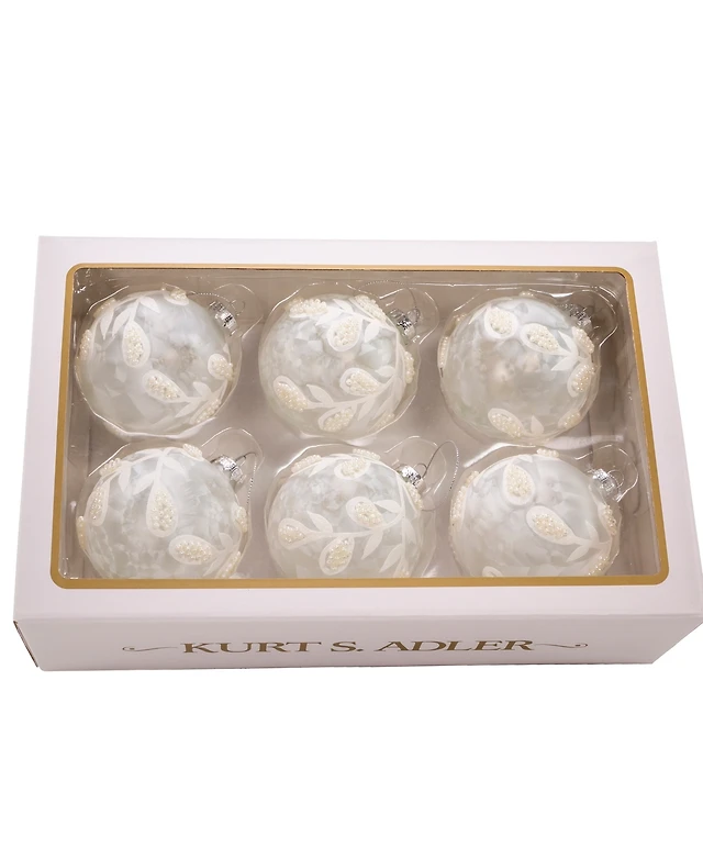 Kurt Adler 80mm Glass Imitation Pearl 6 Piece Ball Ornament Set