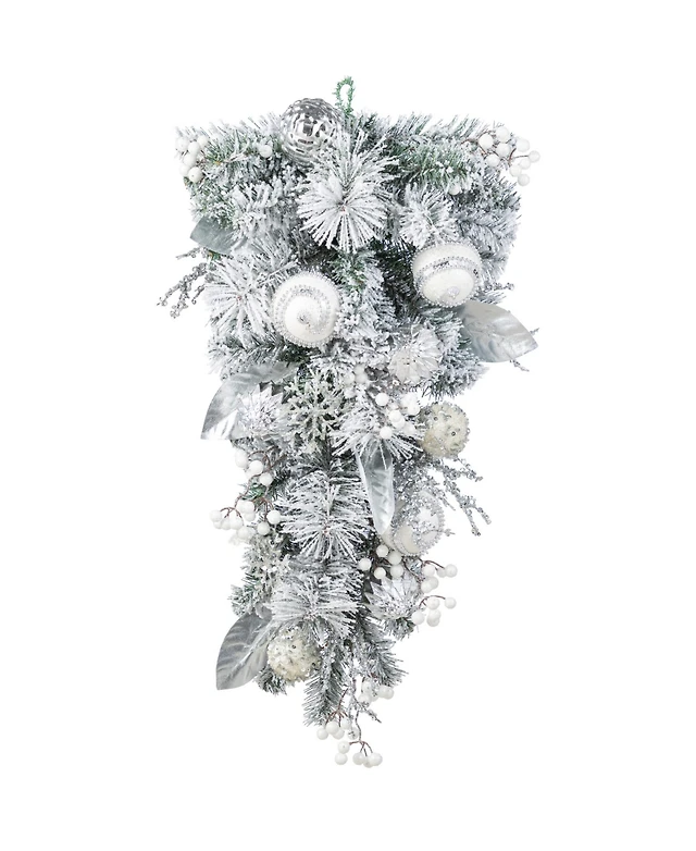 Glitzhome 25" H Flocked Berry, Ornament and Pinecone Ribbon Teardrop