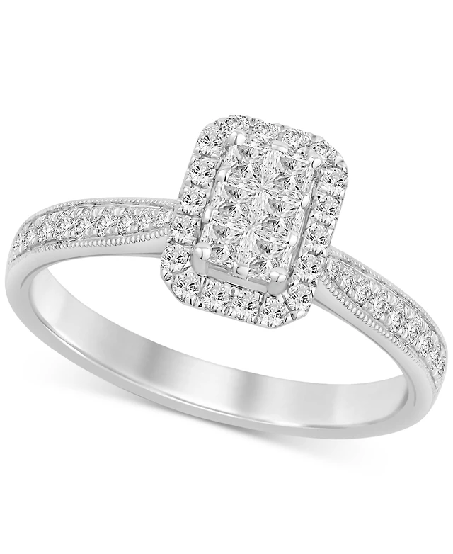 Now + Forever Round-Cut Diamond Halo Bypass Engagement Ring 1/2 ct tw 14K Gold