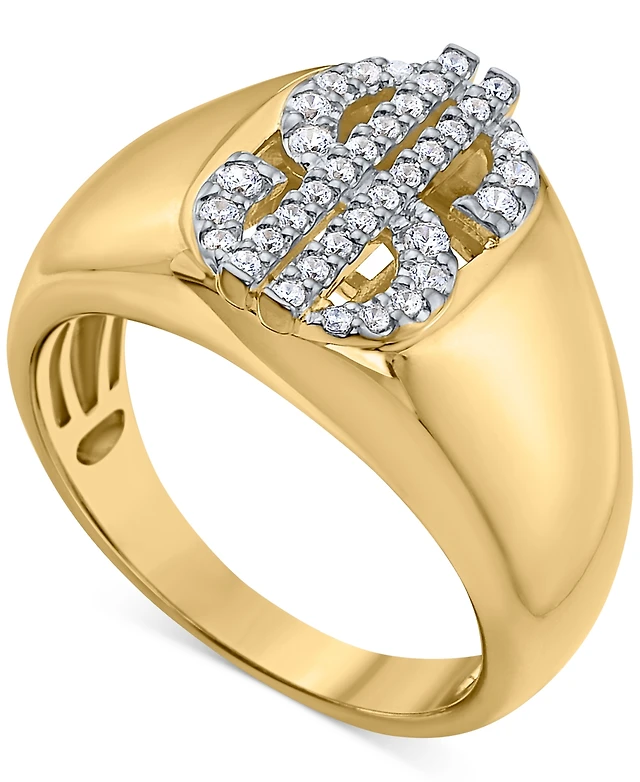 Men's Baguette & Round-Cut Diamond Cross Ring 1-1/4 ct tw 10K Yellow Gold