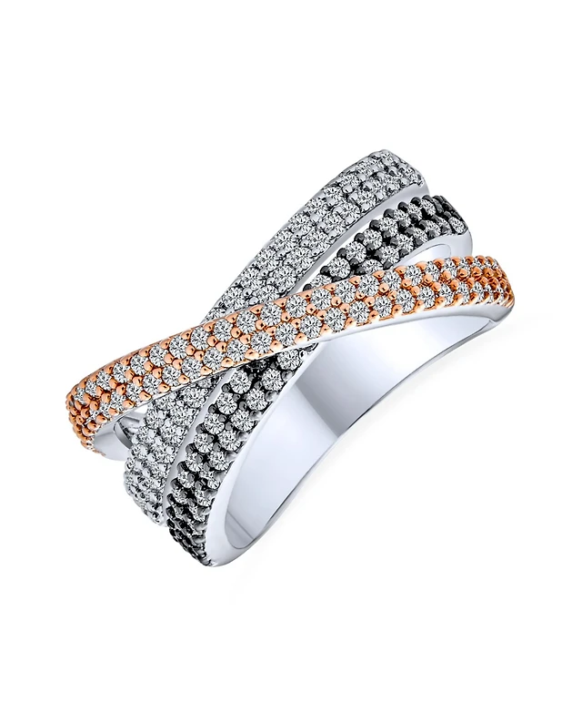 Bling Jewelry Criss Cross Cubic Zirconia Triple Eternity Band Ring Black Rose Silver Plated