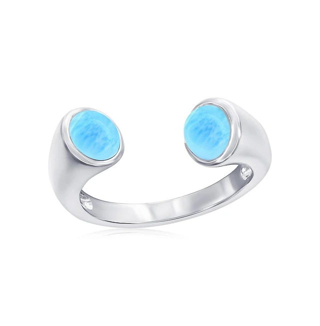 Sterling Silver Round Blue Inlay Synthetic Opal Open Band Ring