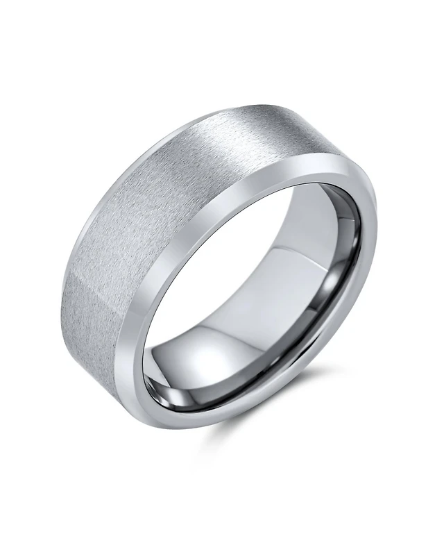 Bling Jewelry 8MM Matte Brushed Titanium Band Ring – Beveled Polished Edge Silver Tone
