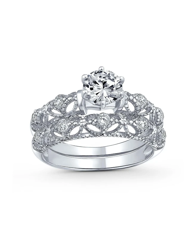 Bling Jewelry 1CT Round Cz Solitaire & Filigree Band Promise Ring Set Sterling Silver
