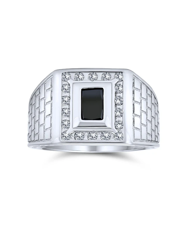 Bling Jewelry Blue Emerald Cut Cz Statement Ring – Brick Pattern Sterling Silver Band