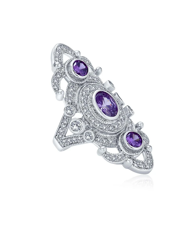 Bling Jewelry European Old World Style 2.5CT Marquise Cz Solitaire Promise Ring with Triple Row Band in Sterling Silver