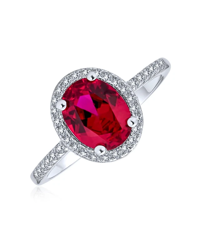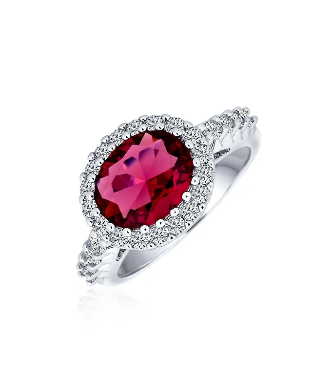 Bling Jewelry Large Fashion Solitaire Cubic Zirconia Pave Cz Cushion Cut Red Art Deco Style Cocktail Statement Ring Silver Plated
