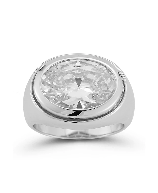 Suzy Levian Sterling Silver Cubic Zirconia Pave Center Stone Ring