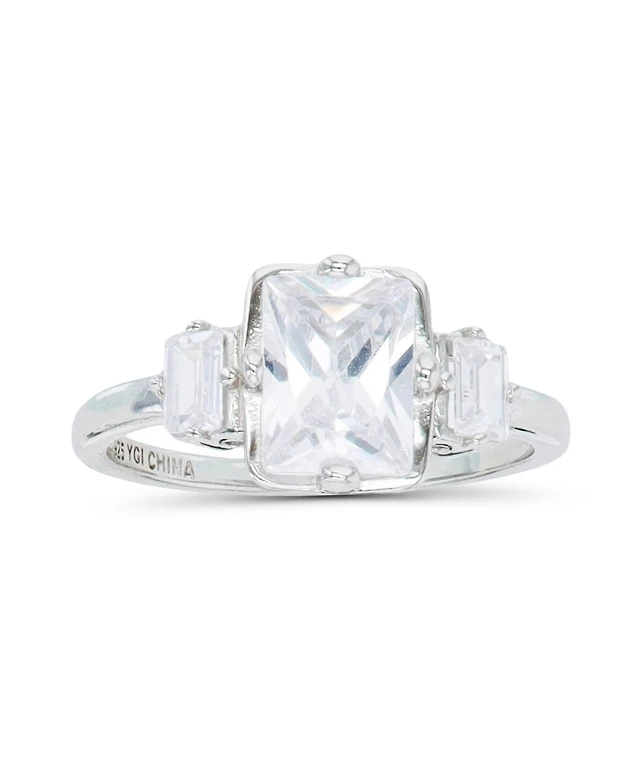 Suzy Levian Sterling Silver Asscher Cut Cubic Zirconia Center Stone Ring