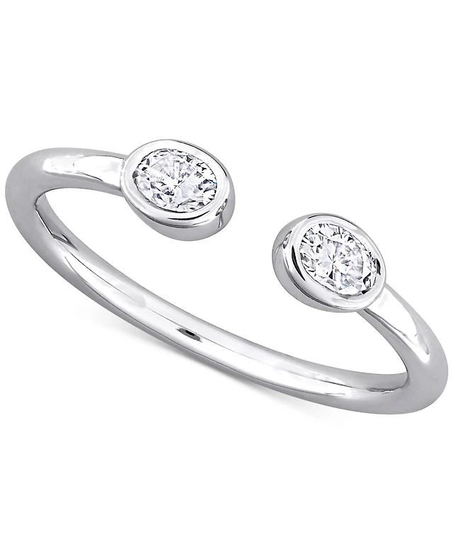 Cubic Zirconia Trio Link Ring Sterling Silver or 14k Gold Over