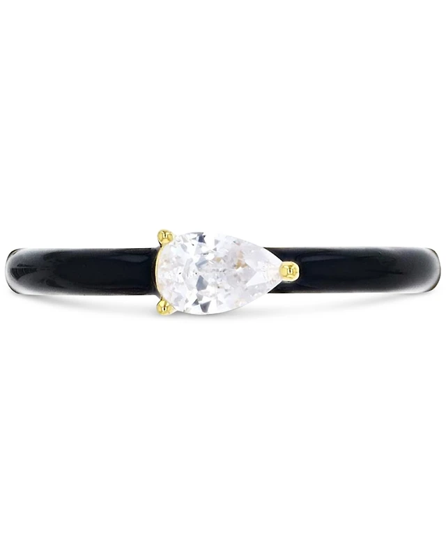 Cubic Zirconia Pear & Hand-Painted Enamel Ring Sterling Silver