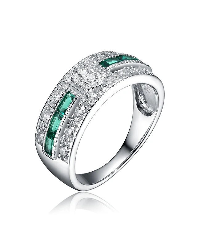 Emerald (1/5 ct. t.w.) and Diamond (1/20 ct. t.w.) Stackable Ring in Sterling Silver