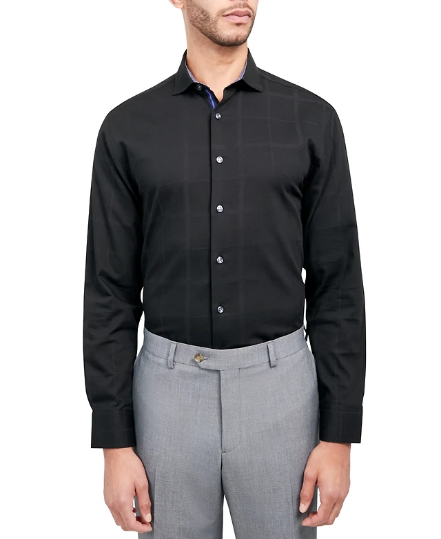 Michelsons of London Men's Regular-Fit Windowpane Check Dress Shirt