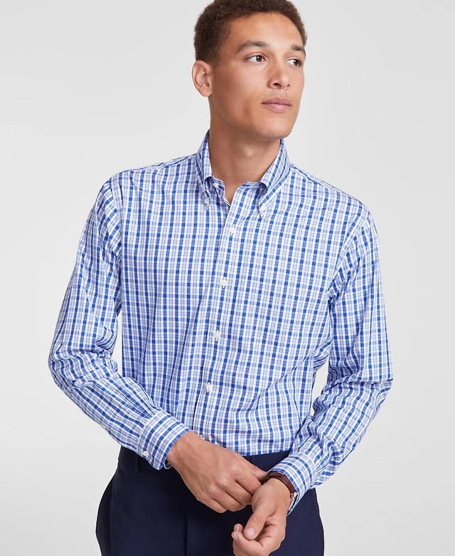 Brooks Brothers Men's Regular-Fit Spread Collar Tartan Plaid Dress Shirt