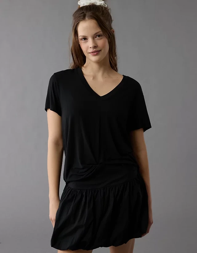 AE Soft & Sexy V-Neck Cropped Waffle T-Shirt