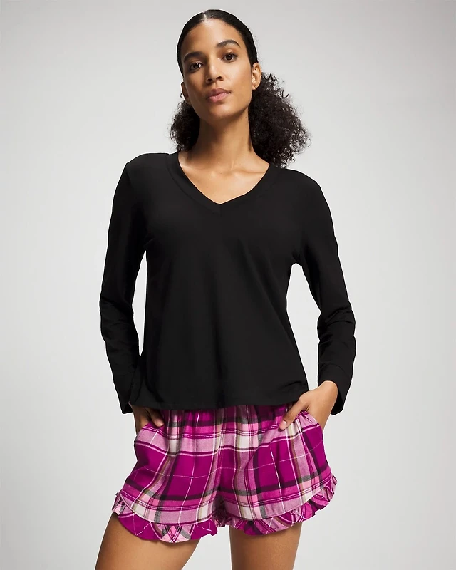 Lauren Ralph Women's Long-Sleeve Notch Collar Top and Pants Pajama Set