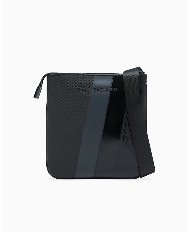 A|X Armani Exchange Men's Striped Flat Logo Graphic Details Crossbody Bag