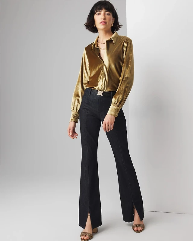 High-Rise Sculpt Skinny Flare Ankle-Slit Jeans