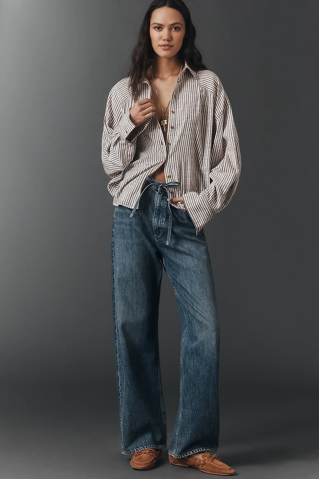 rag & bone Phoebe Drawstring High-Rise Wide-Leg Jeans