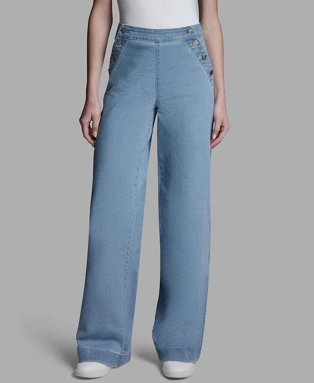 Woman Within Women's Fineline Stretch Denim Wide-Leg Pull-On Jeans